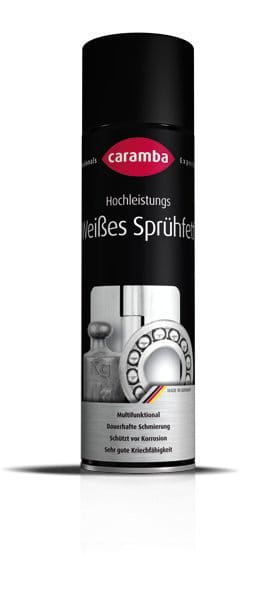 Biały smar CARAMBA jest smarem wszechstronnego stosowania do smarowania i zabezpieczenia antykorozyjnego mocno obciążonych części. Jest jasnym środkiem przeznaczonym do dźwigni, kół zębatych, rolek, zawiasów, łożysk kulowych, łańcuchów motocyklowych itp. Charakteryzuje się dobrymi właściwościami smarnymi również przy wysokich ciśnieniach, a także jest odporny na wysokie temperatury.