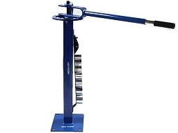Giętarka do stali o mocnej konstrukcji i niewielkim rozmiarze umożliwiającym łatwy transport i przechowywanie. Giętarka przeznaczona do stali okrągłej i płaskiej, umożliwia tworzenie prostych jak i skomplikowanych kształtów o kącie gięcia do 180°. Giętarka do płaskowników i stali zbrojeniowej wyposażona w ogranicznik gięcia umożliwiający wielokrotne tworzenie takich samych kształtów. Możliwość przymocowania giętarki do podłoża za pomocą czterech śrub w celu zapewnienia większe stabilności podczas pracy.