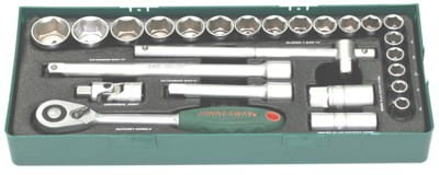 S04H4 18 szt. - klucze nasadowe 1/2" - 10, 11, 12, 13, 14, 15, 16, 17, 18, 19, 20, 21, 22, 23, 24, 27, 30, 32 mm