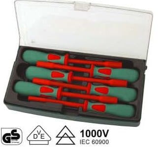 ZAWARTOŚĆ: 6szt. - wkrętaki z końcówką nasadową 6-kt. 5; 6; 7; 8; 10; 13mm. Wkrętaki spełniają wymagania normy IEC 60900. Izolacja zgodna z normą VDE. Przeznaczone do pracy pod obciążeniem do 1000V.