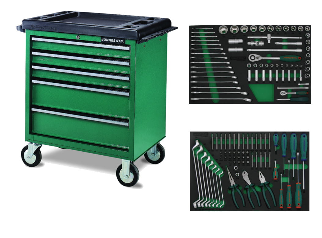 Wózek 5-szufladowy z zestawem 124szt. narzędzi we wkładkach EVA JONNESWAY