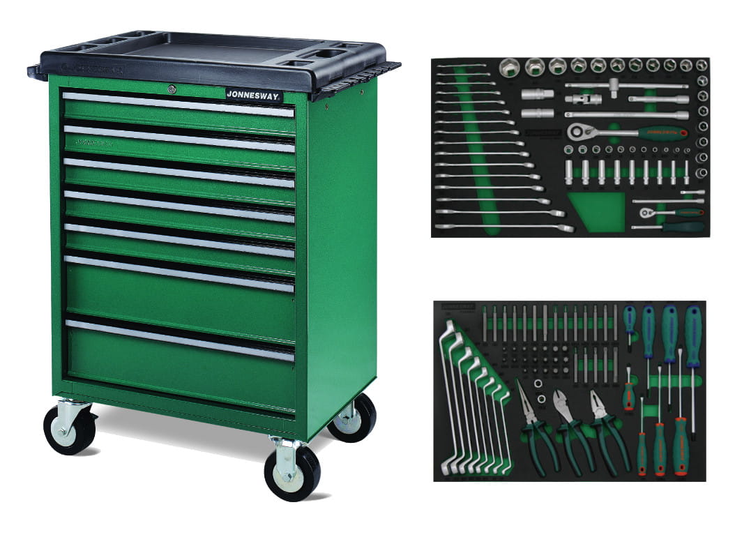 Wózek 7-szufladowy z zestawem 124szt. narzędzi we wkładkach EVA