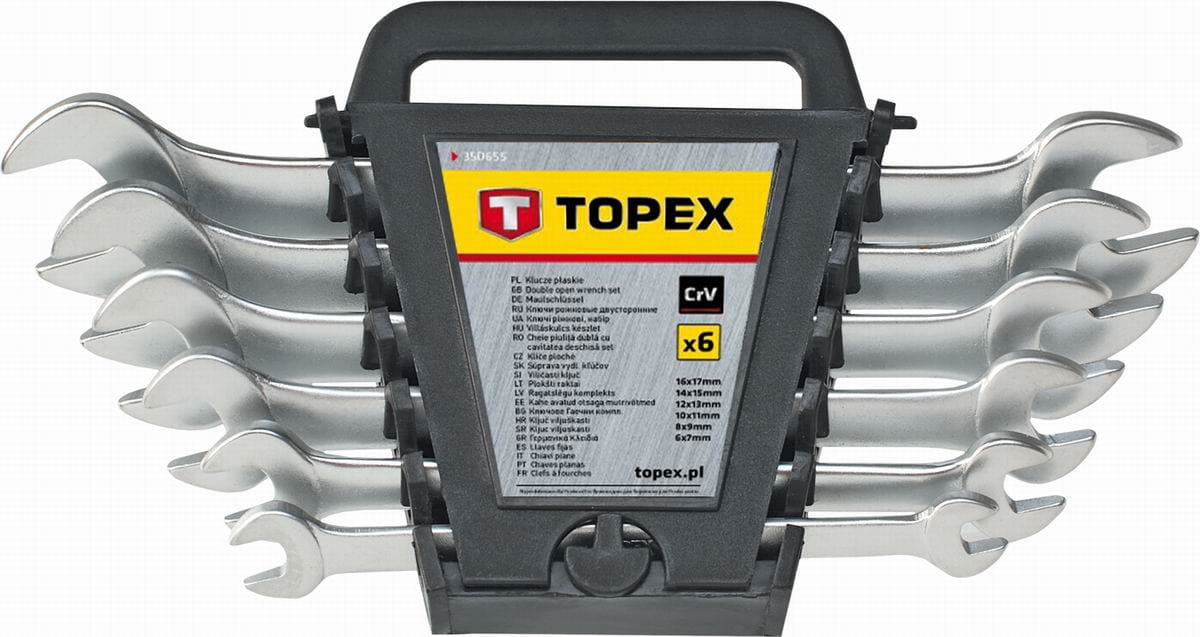 Zestaw kluczy płaskich TOPEX bardzo przydatny przy pracach mechanicznych oraz przy majsterkowaniu. Klucze wykonane z wytrzymałej stali chromowo-wanadowej, zapewniającej długą żywotność narzędzia. Ułożone w praktycznym opakowaniu z tworzywa sztucznego, co ułatwia przechowywanie. Marka TOPEX skierowana jest do majsterkowiczów.