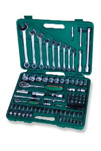 Kpl. kluczy nasadowych 1/4 i 1/2" oraz kluczy płasko-oczkowych 82szt.